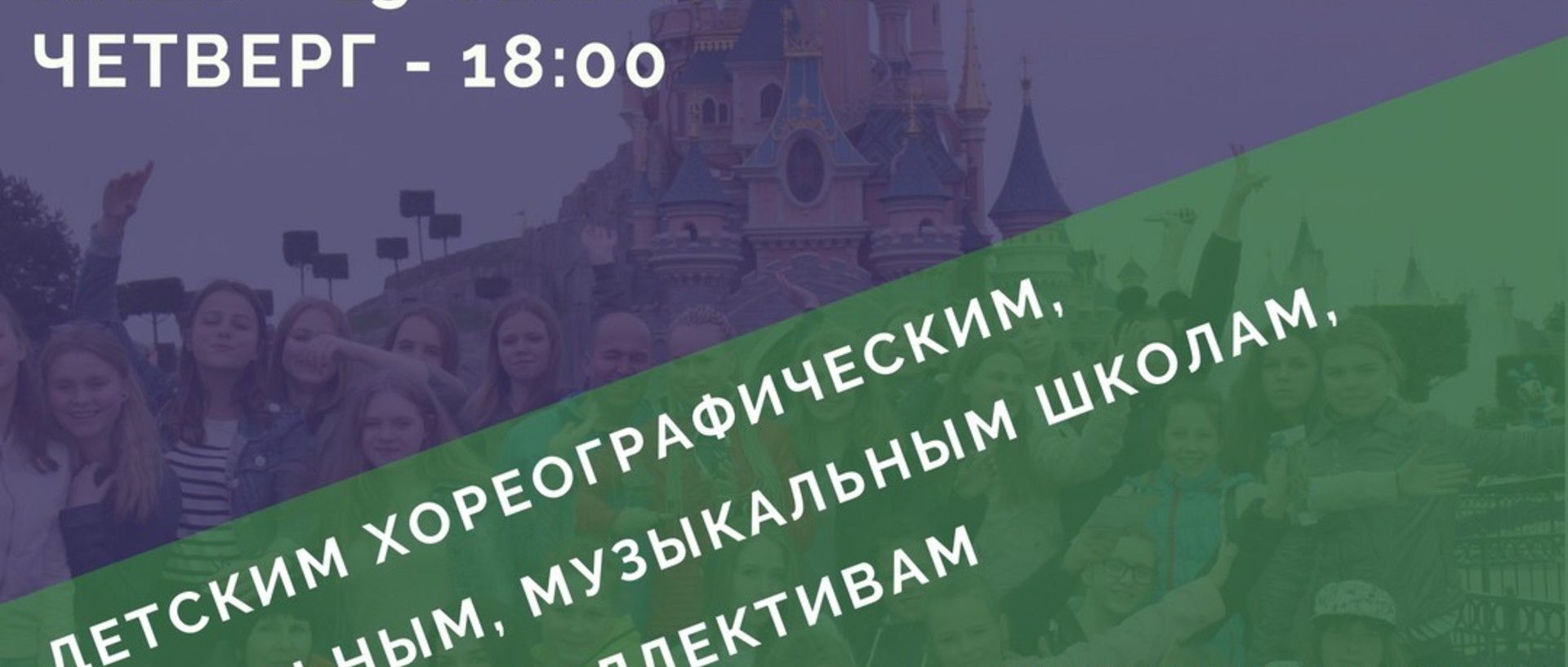 Творческая встреча Форум Фестивалей в Киеве! 13.Сентября 2018 в 18:00! Розыгрыш гранта на фестивальную поездку в Европу! Внимание всем детским и молодёжным хореографическим, вокальным музыкальным школам, студиям и коллективам Украины! Уважаемые руководители и педагоги приглашаем Вас на уникальную встречу «Как побеждать на Международных конкурсах в Европе». Все участники получат уникальную возможность выиграть Грант для участия в Фестивале в Праге! Каждый руководитель сможет воспользоваться коллективной скидкой на участие в одном из ведущих конкурсов в Италии, Франции или отправится в фестивальный круиз по Средиземноморью! На встрече вы сможете • лично познакомится с организаторами Ведущего фестиваля в Европе • Узнать, как побеждать и выступать на самых престижных сценах в Праге, Берлине, Диснейленде или Китае! • Узнать подробно о международных мастер-классах от ведущих профессионалов в Европе и Америке • Как привлечь спонсоров и финансирование для своей школы- коллектива • Пообщаться с коллегами в предверии Нового учебного года и обменятся опытом • Получить скидку на фестивальную поездку в 2019 году *вход свободный/снэк и напитки Своё участие вы можете подтвердить до 11. сентября на имэйл artmarket@praha-cz.net или связаться через WatsApp или Viber +420773170954 До встречи в Киеве! www.childrens-festivals.com